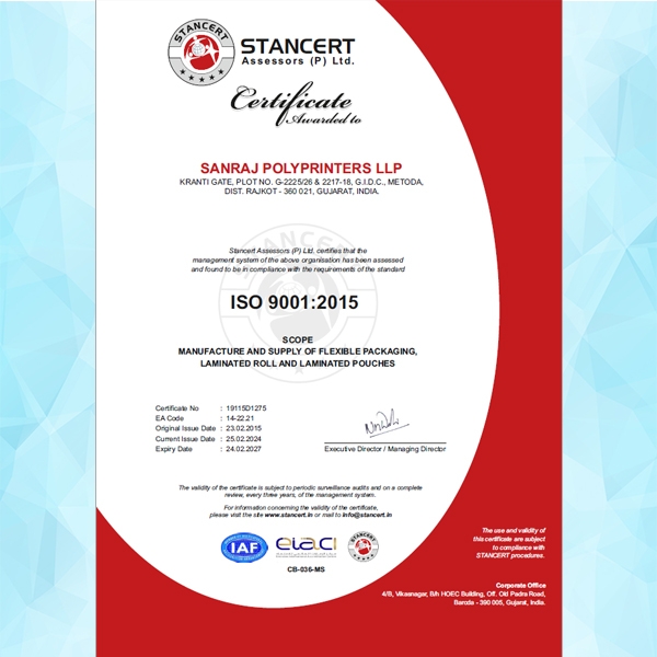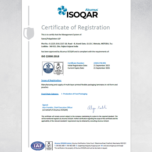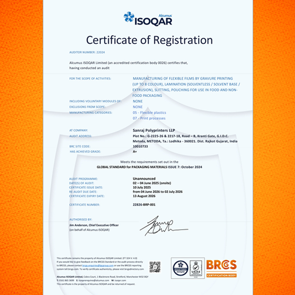 Sanraj Polyprinters operates with two state-of-the-art facilities spanning 38,000 square meters in Rajkot, Gujarat, designed to handle every stage of flexible packaging production. With cutting-edge machinery, in-house film extrusion, and robust quality systems, our plants combine efficiency, innovation, and sustainability to serve 150+ clients across industries